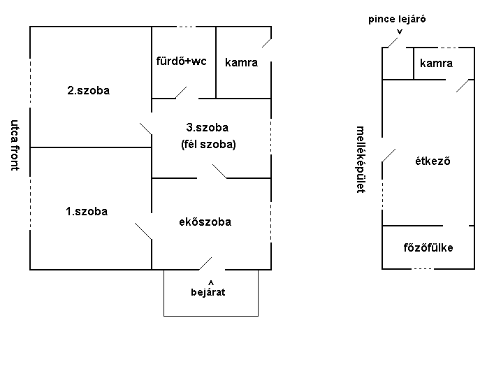 | Egyéb helyiségek | : közlekedő, fürdő+wc, kamra | |