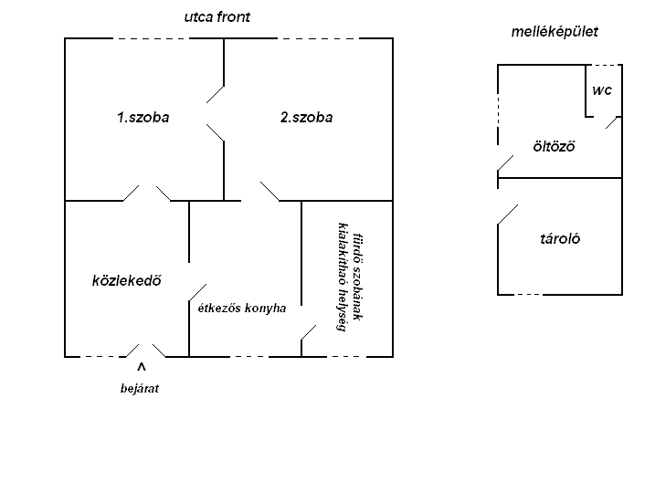 | Egyéb helyiségek | : közlekedő, étkezős konyha, fürdőnek kialakítható helység | |
